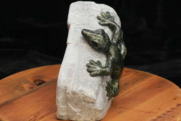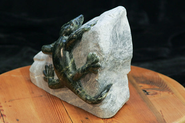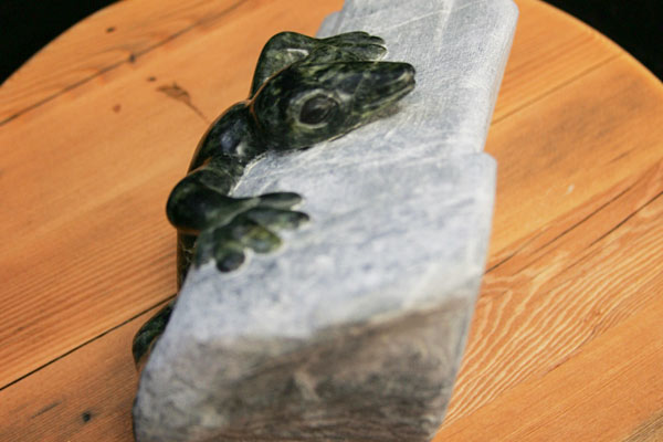 What makes this piece memorable and unique is that it is carved from a single piece of Brazilian soapstone, contrasting finished and unfinished surfaces.Vitals: 20 cm (8") height; 20 cm (8") width; 10 cm (4") depth